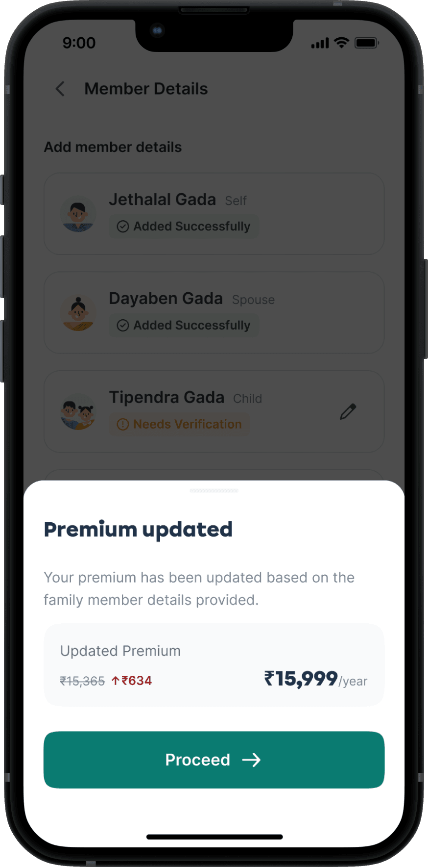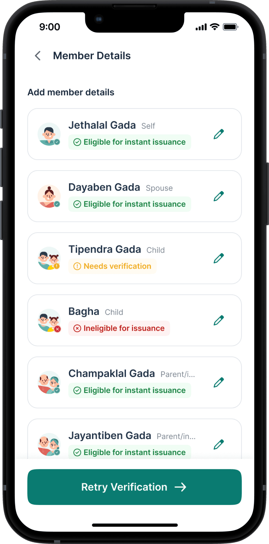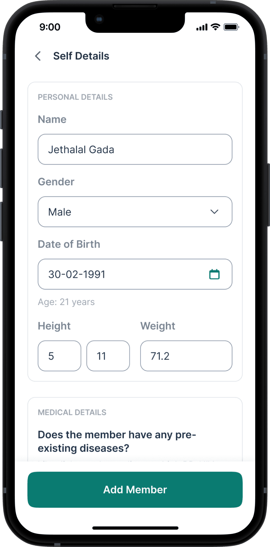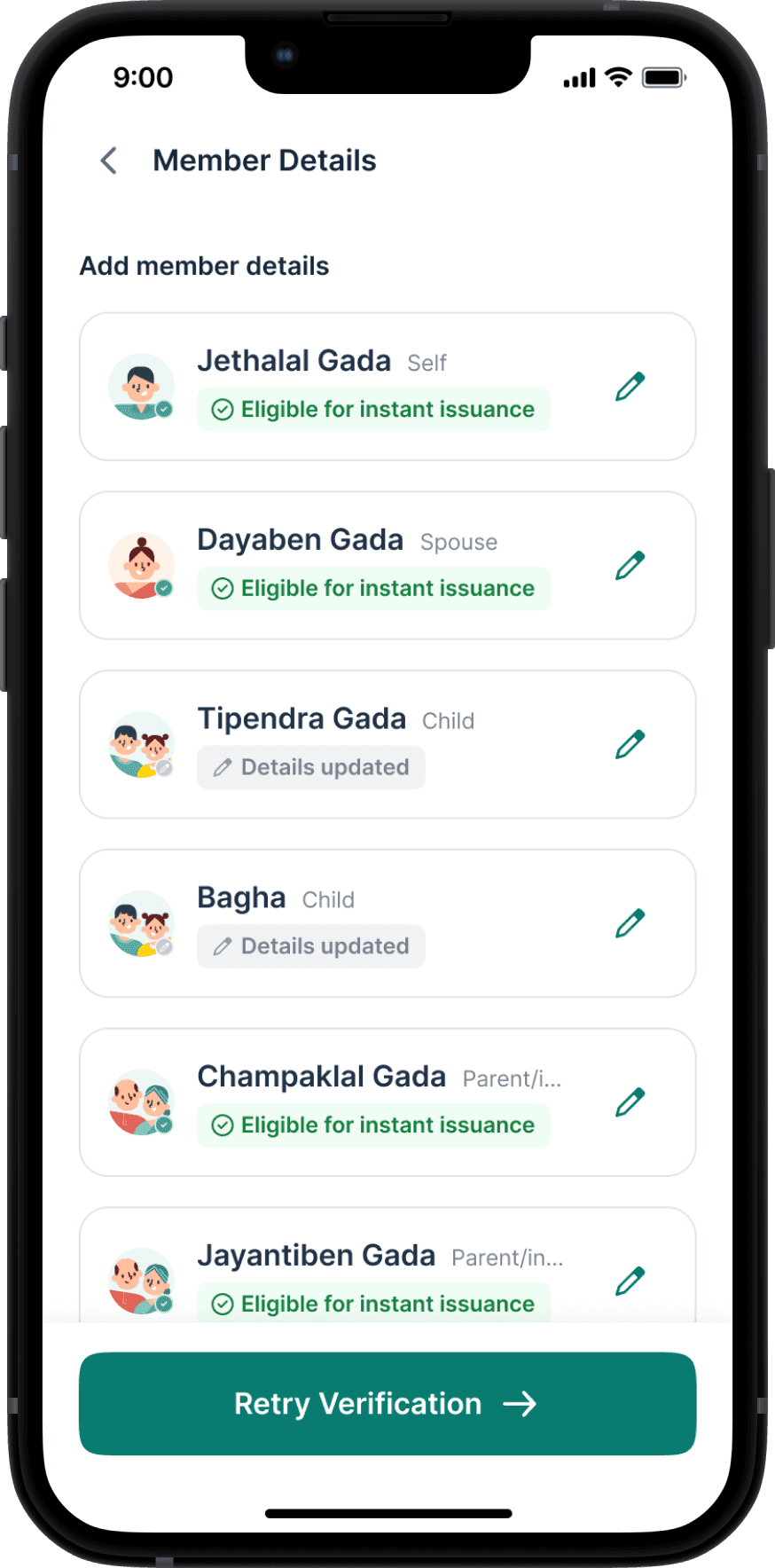 Instead of asking everything from scratch, we pre-filled family member data from users’ employer policy. This reduced drop-offs and effort, while allowing users to add additional members like parents.