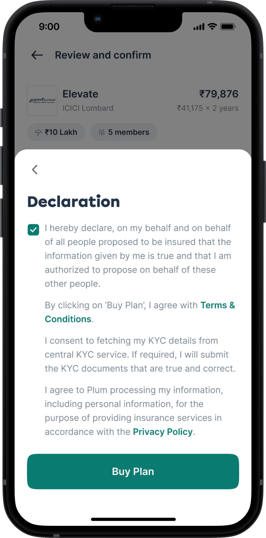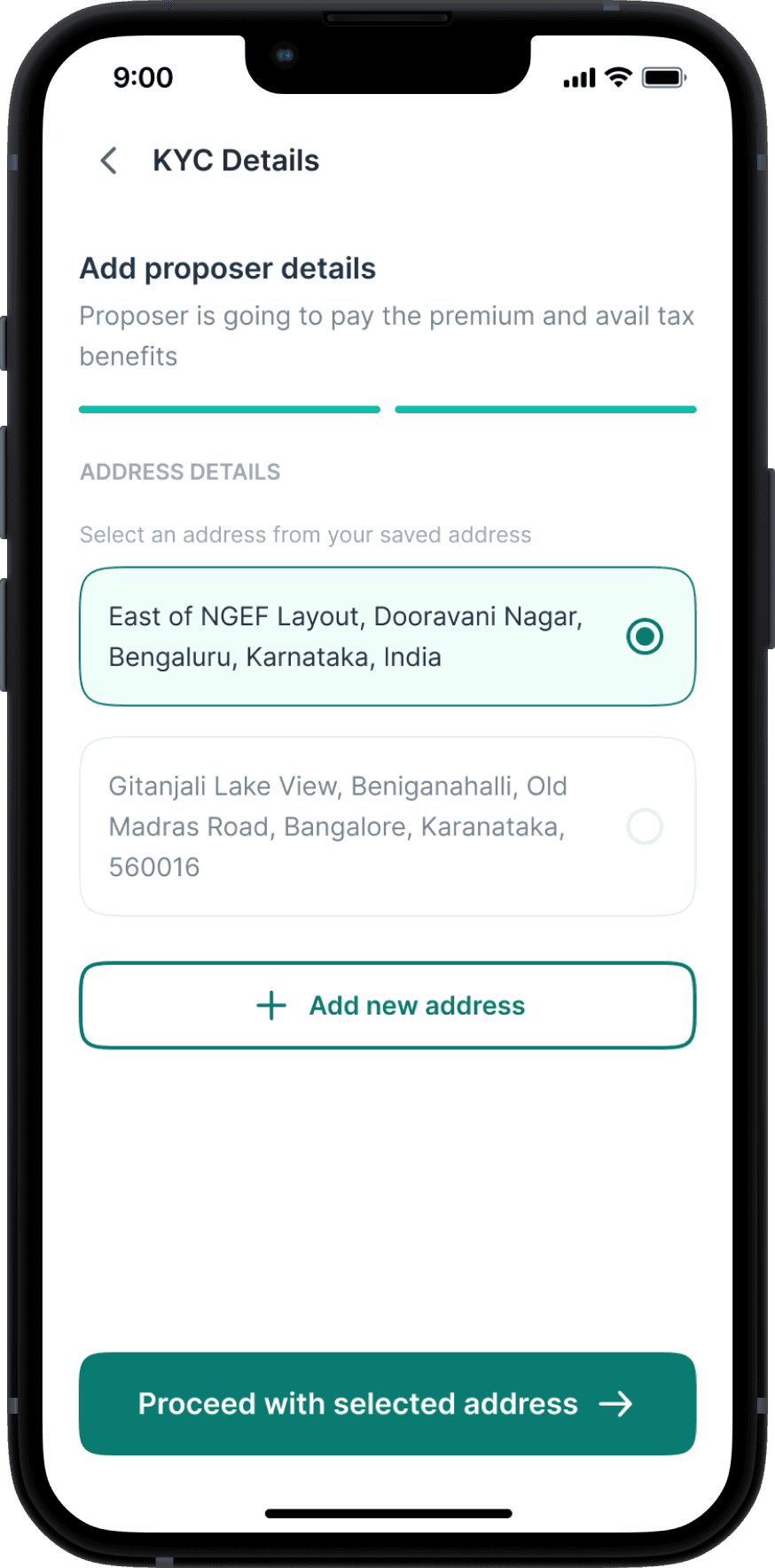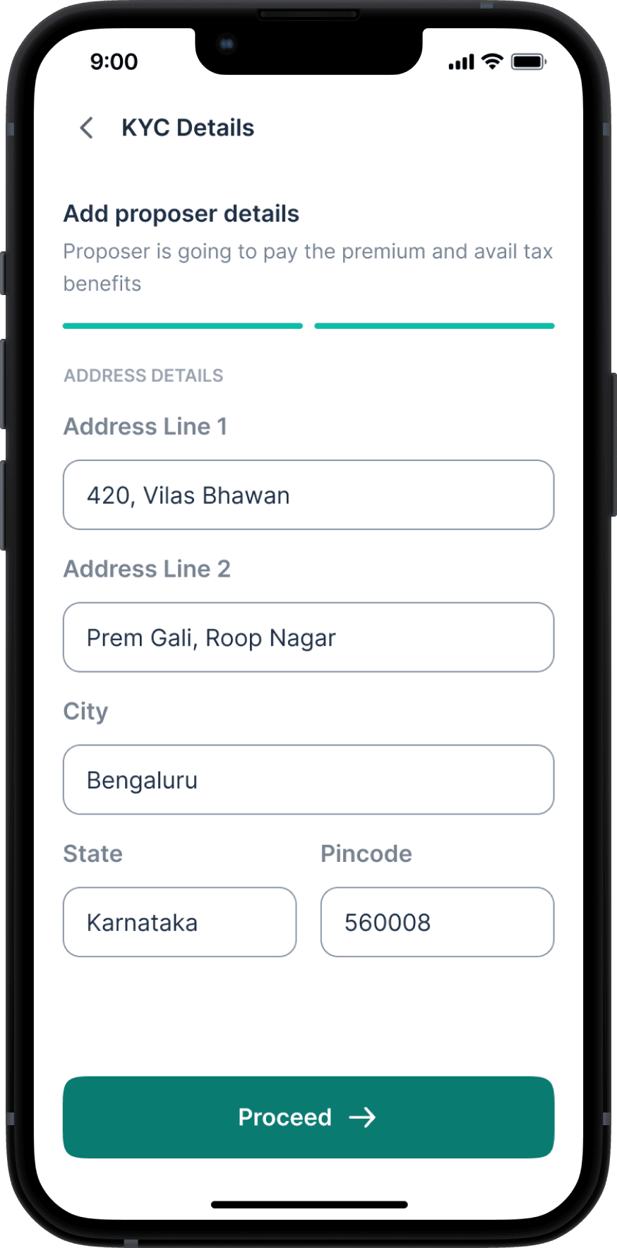 This step included basic personal details and address validation. Since many users were already covered by employer insurance via Plum, we leveraged pre-filled KYC information wherever possible to reduce friction.