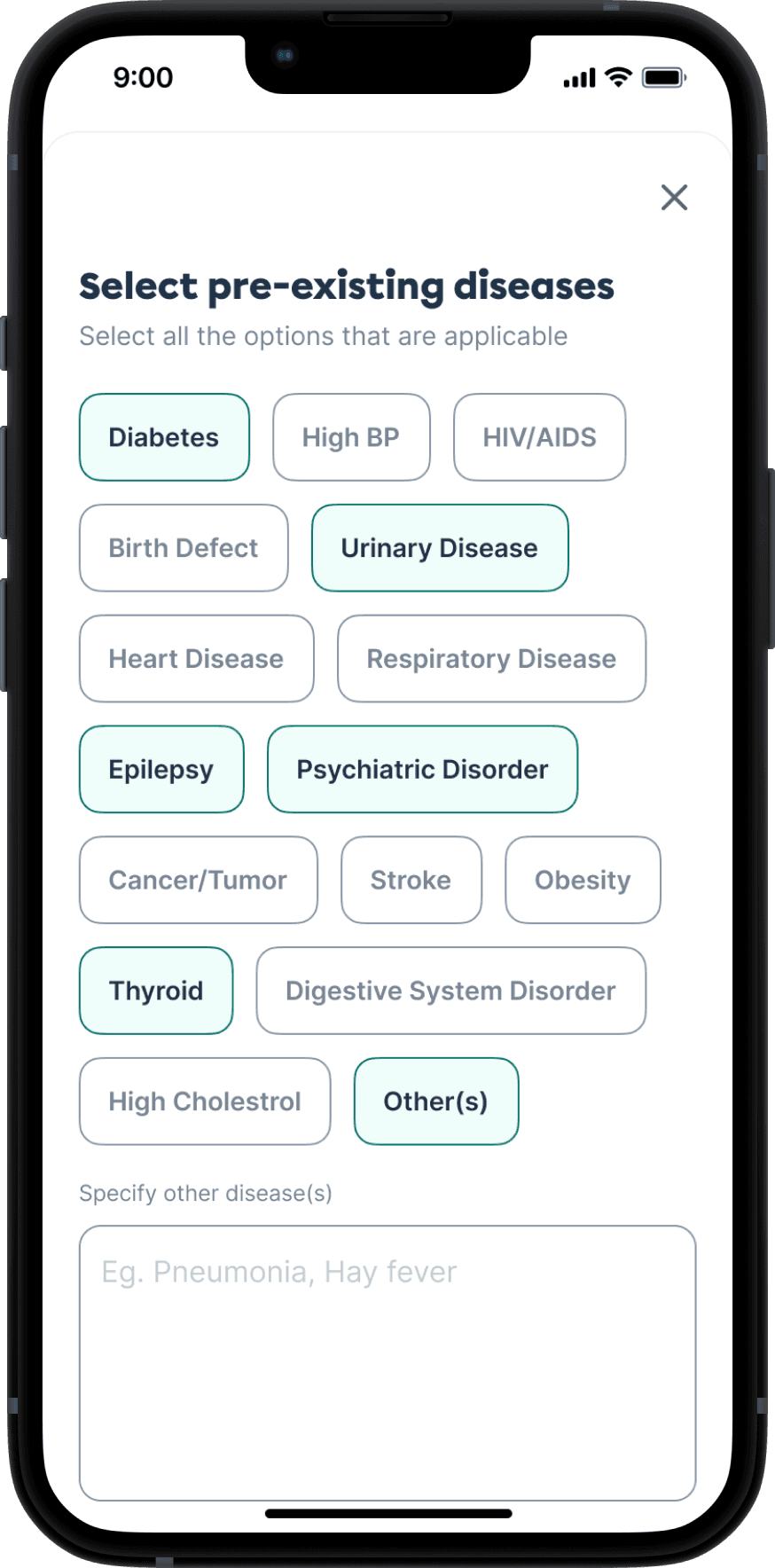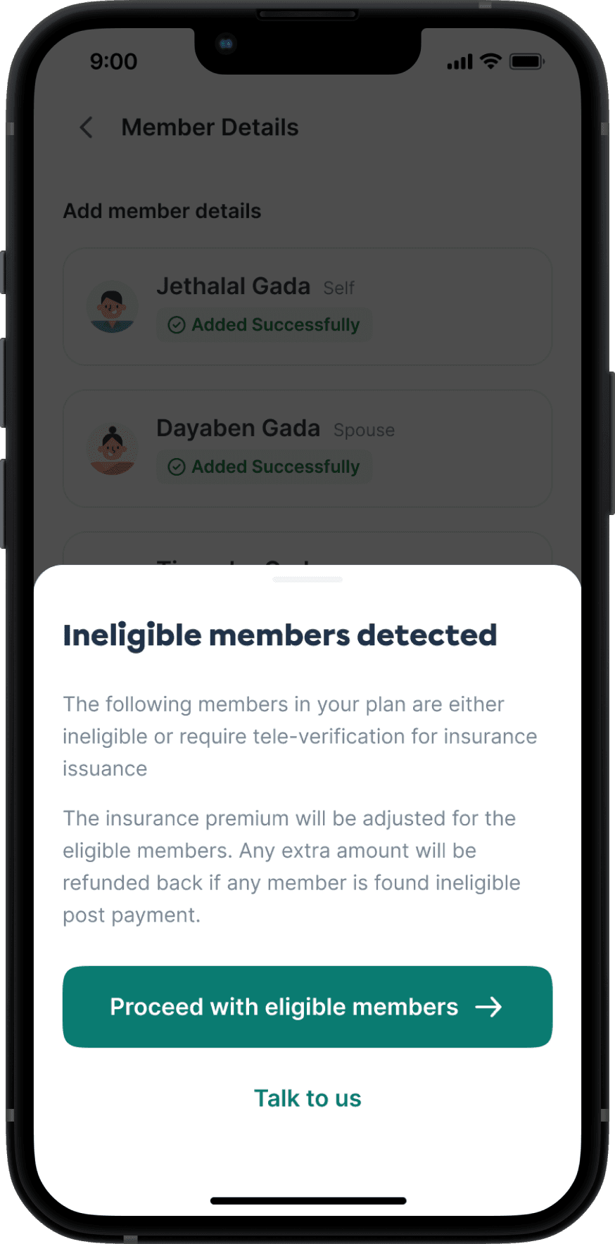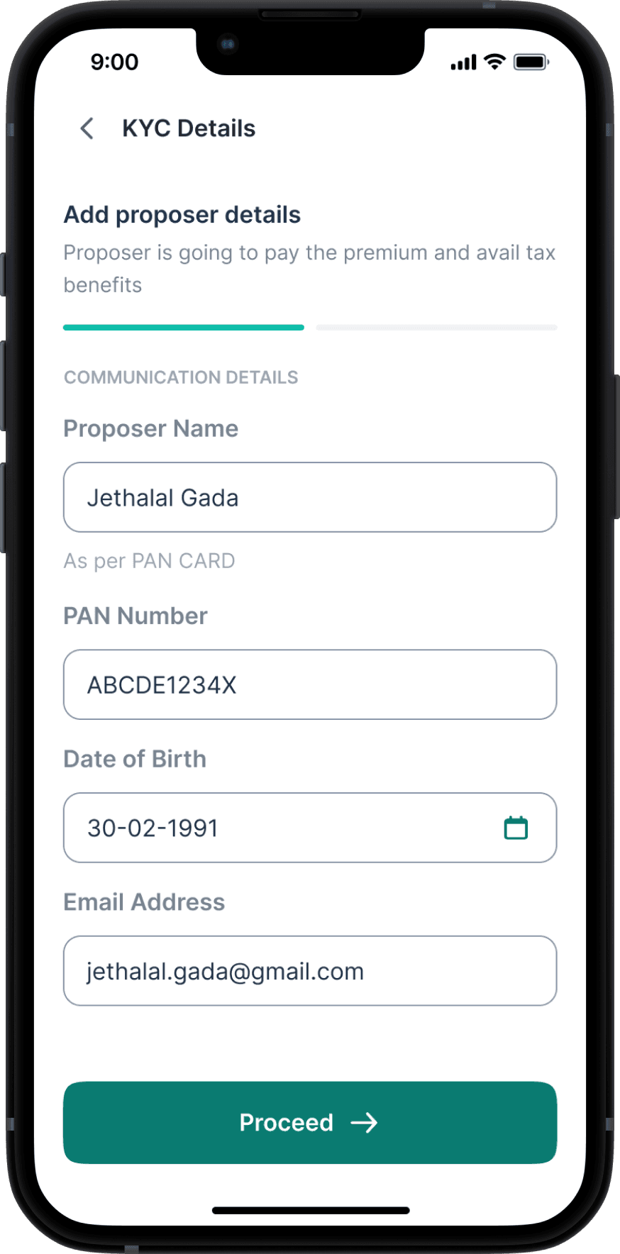 This step included basic personal details and address validation. Since many users were already covered by employer insurance via Plum, we leveraged pre-filled KYC information wherever possible to reduce friction.