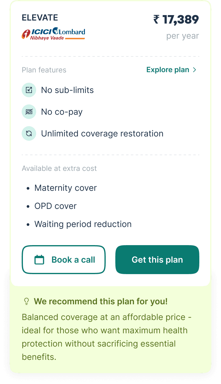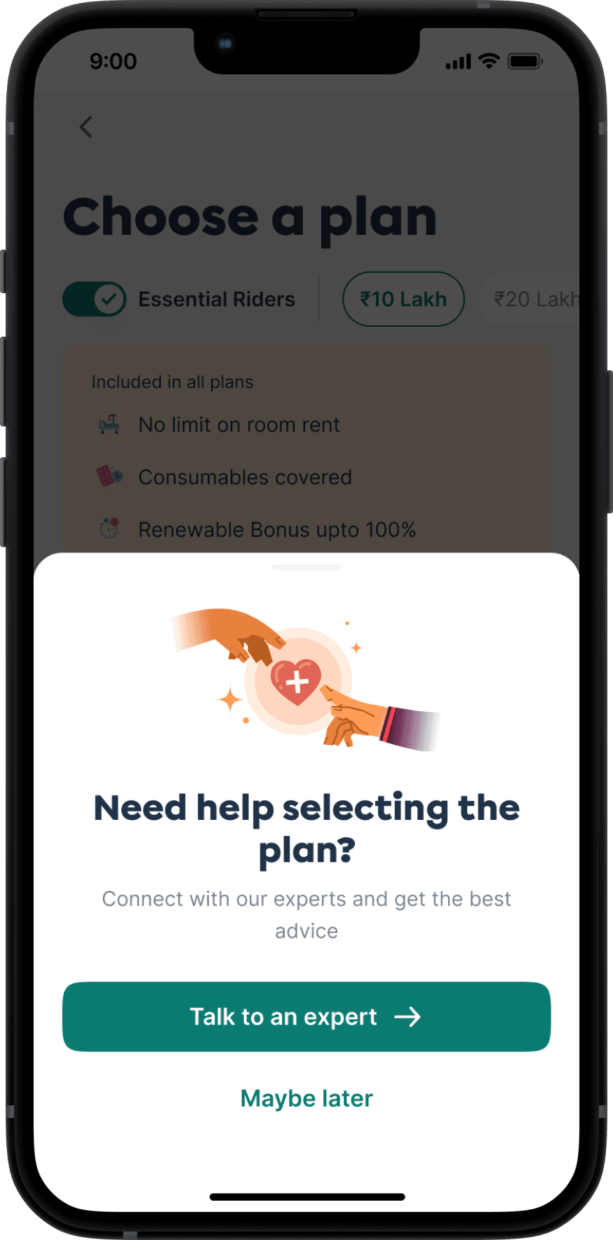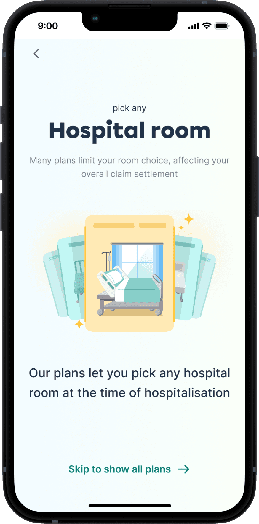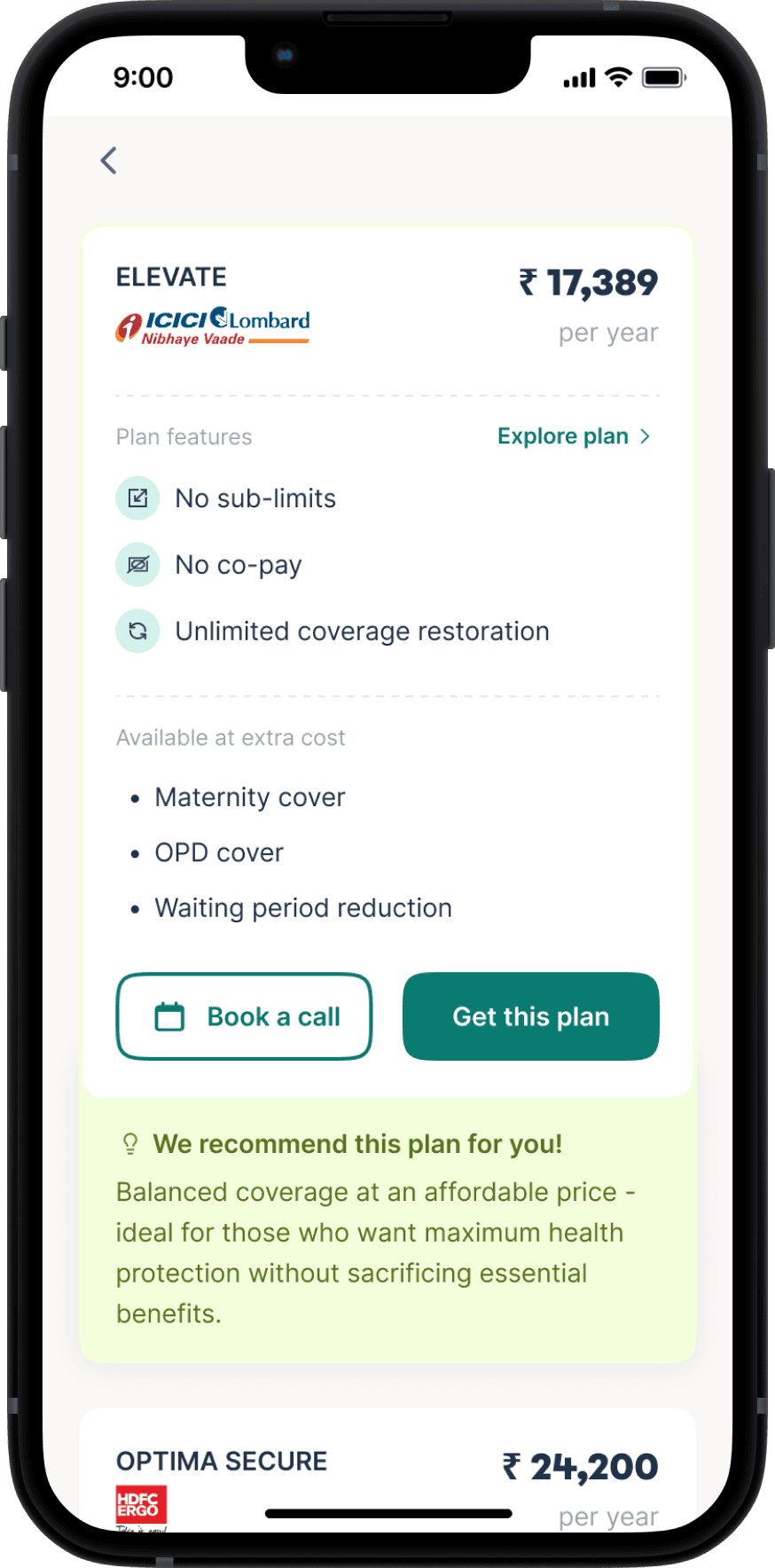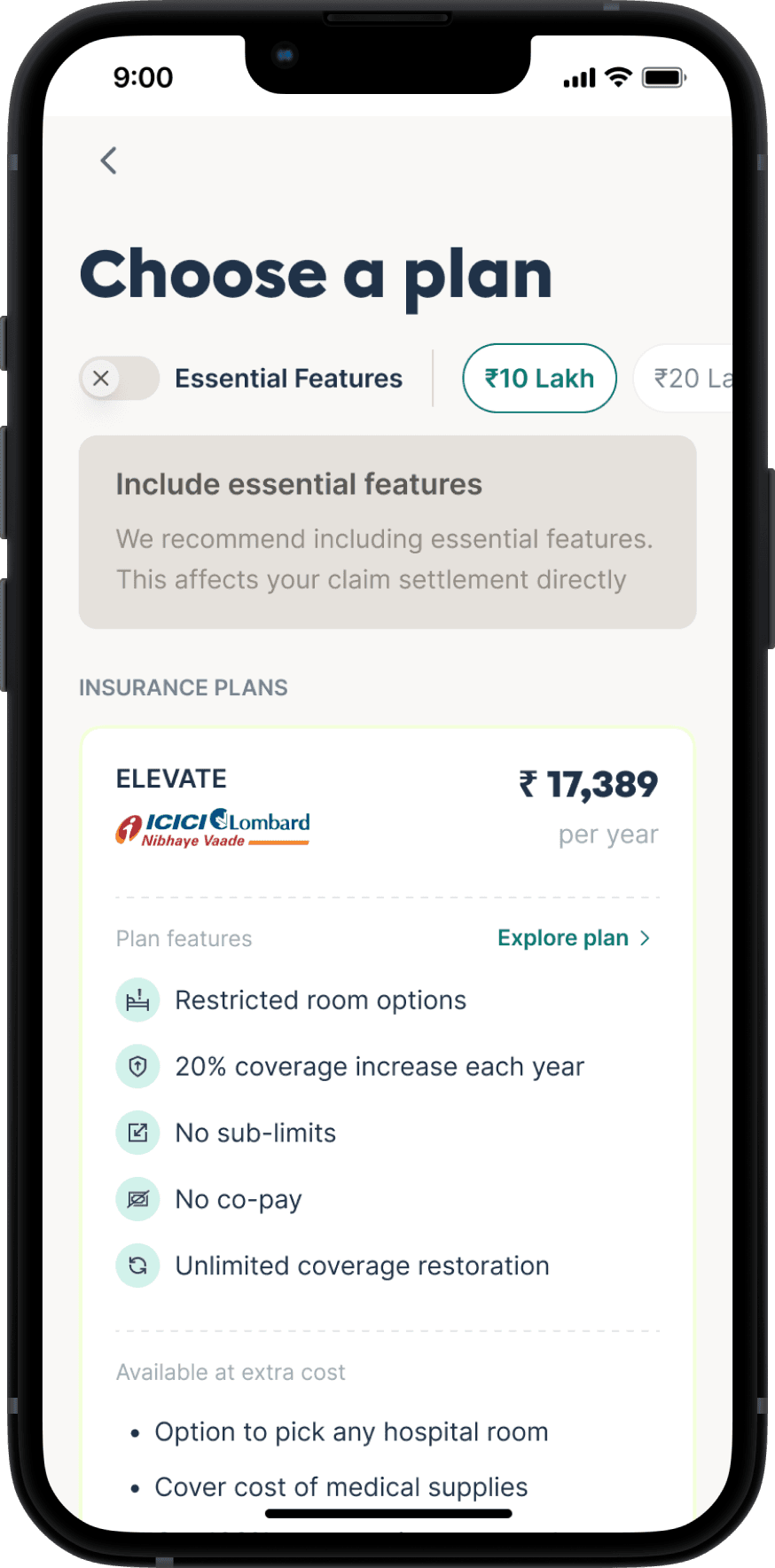 Initially, we went with a standard card-based UI showing 3 plans and their features. But user interviews and input from the sales team made us realize that this wasn’t enough. Users weren’t familiar with insurance jargon like “capped room rent” or “coverage restoration” — and were more likely to pick the cheapest plan by default.