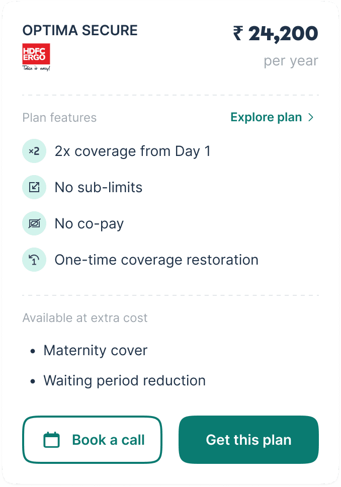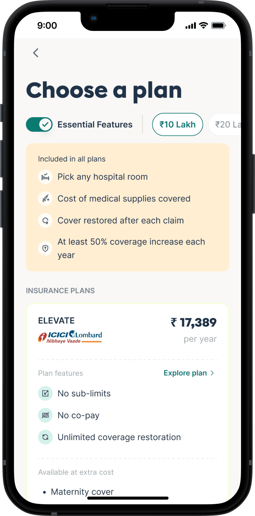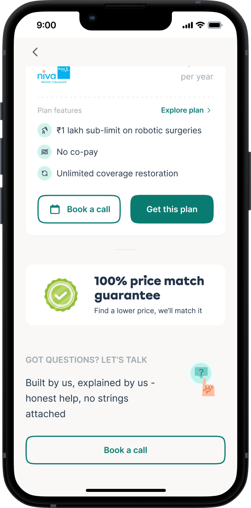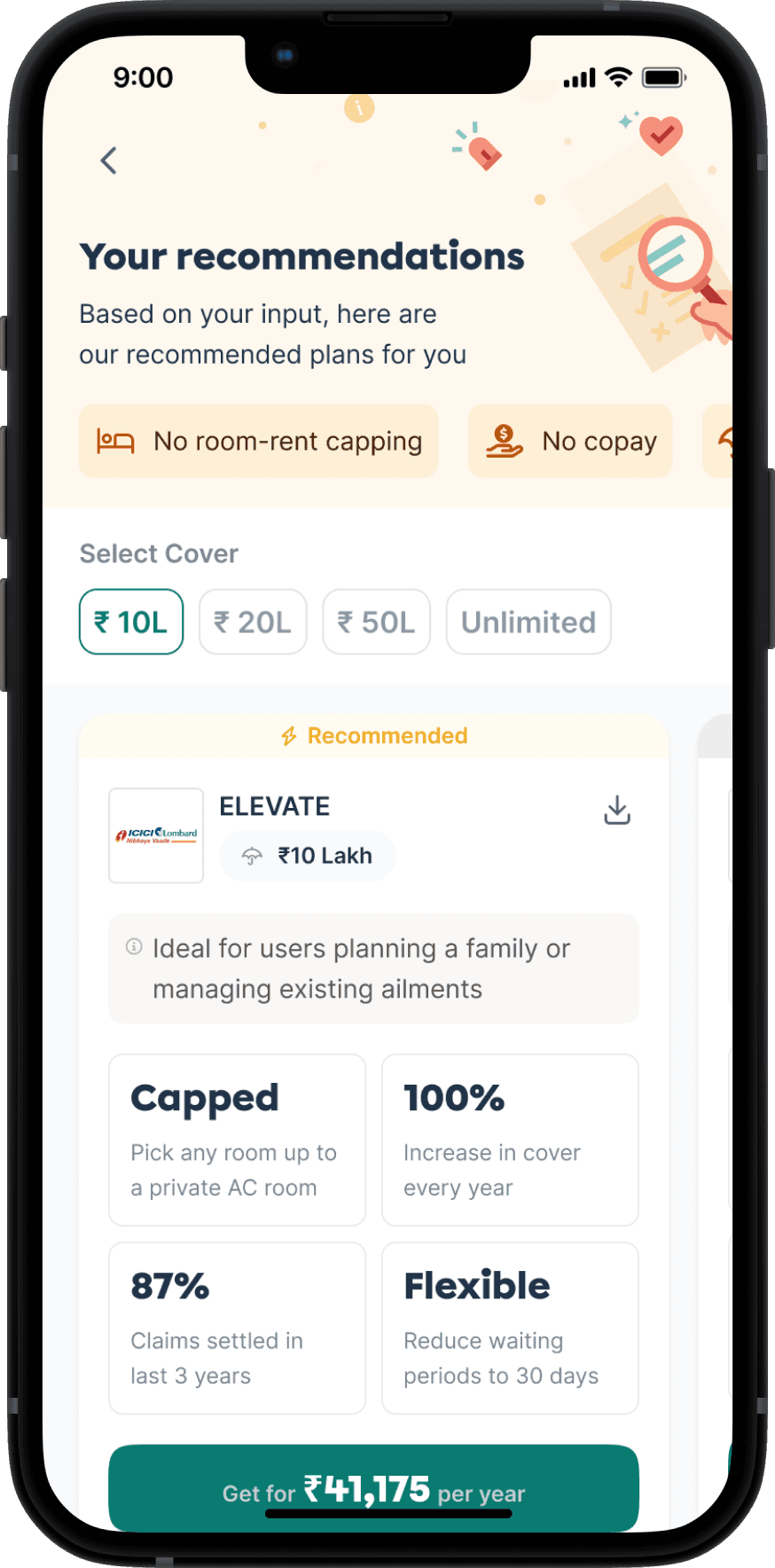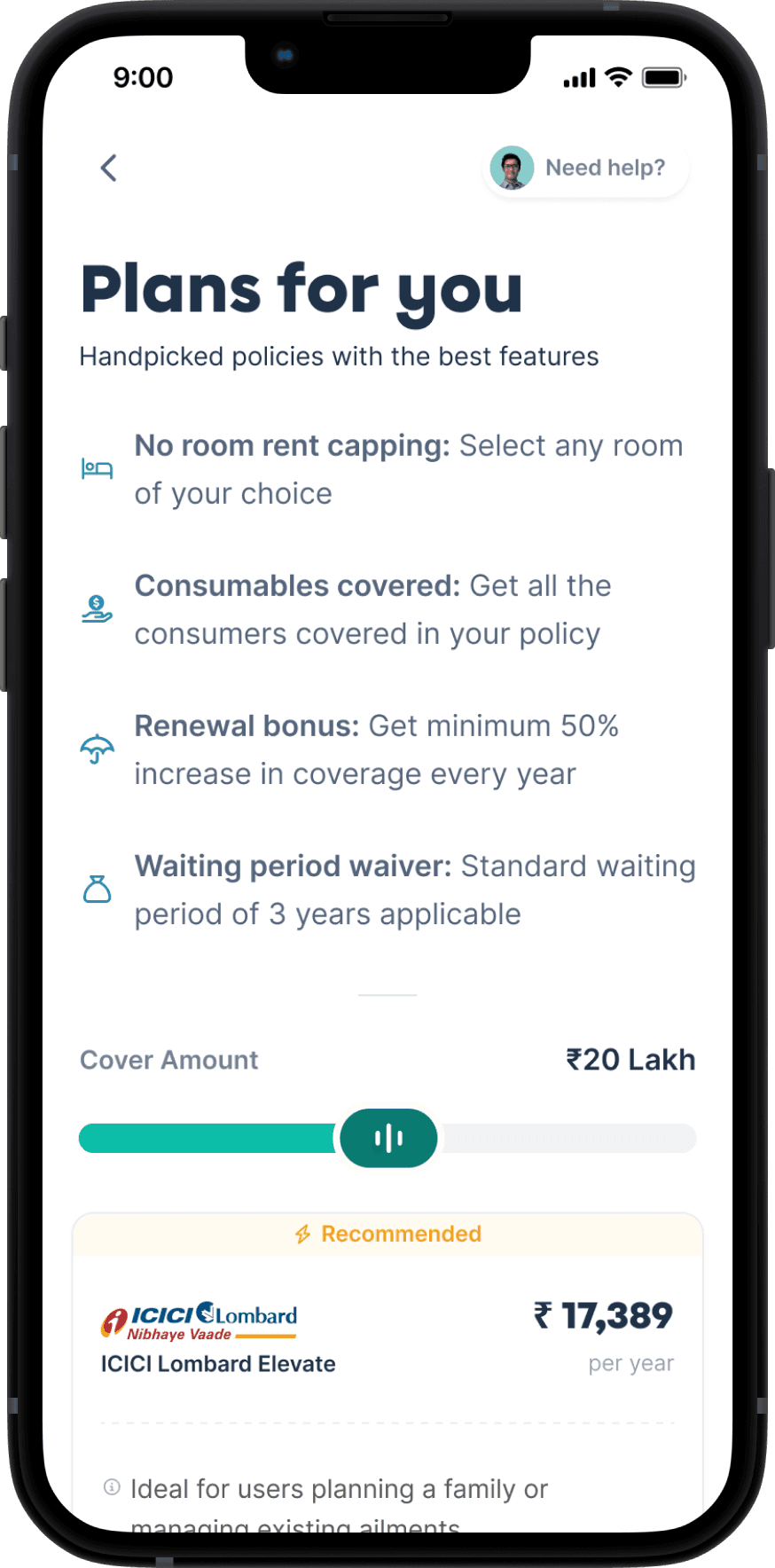 Initially, we went with a standard card-based UI showing 3 plans and their features. But user interviews and input from the sales team made us realize that this wasn’t enough. Users weren’t familiar with insurance jargon like “capped room rent” or “coverage restoration” — and were more likely to pick the cheapest plan by default.