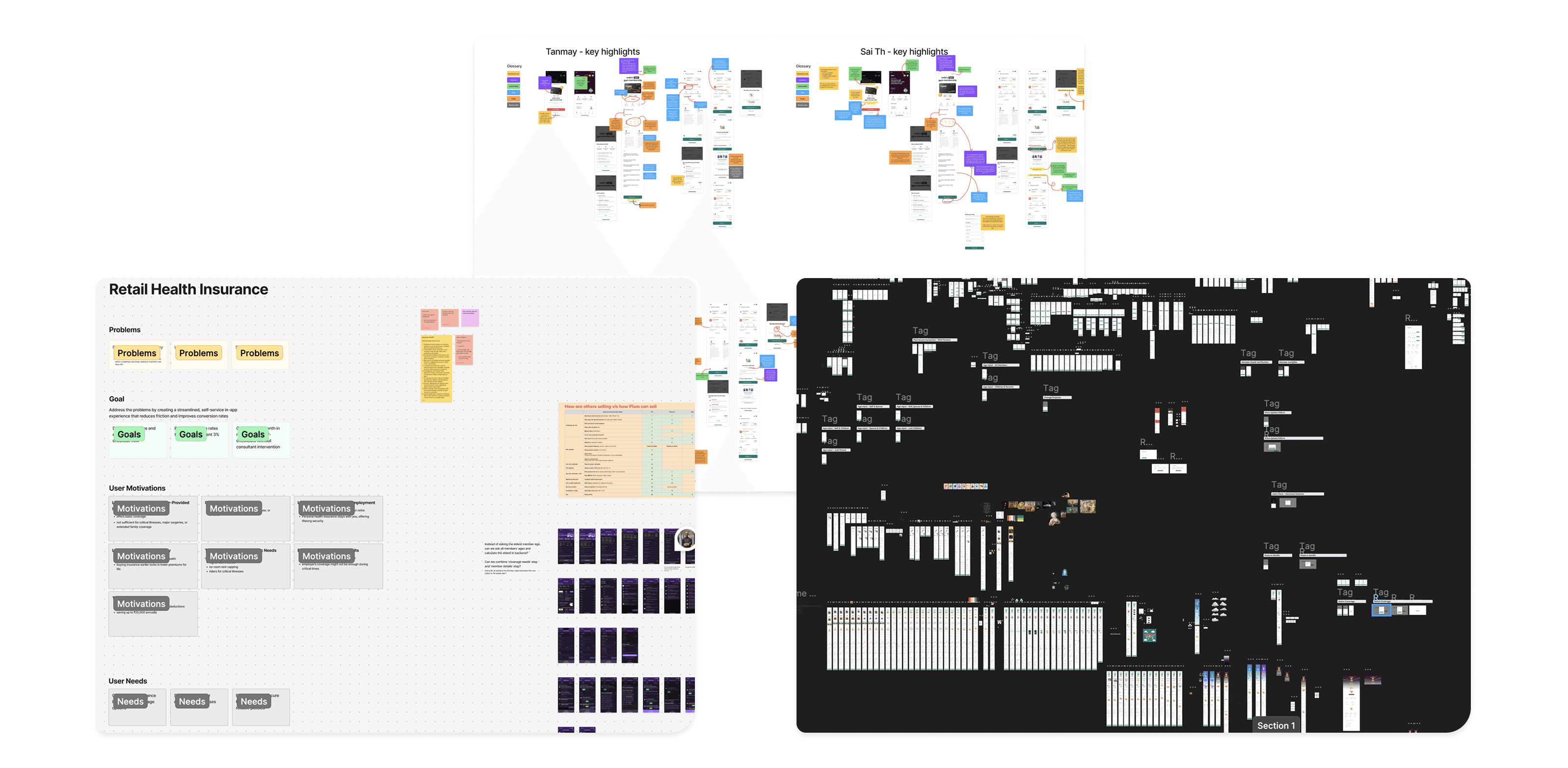 Let me show you how the story came alive — from scribbled questions like “Why would someone buy more insurance?” to Figma flows, logic maps, and plan toggle experiments.